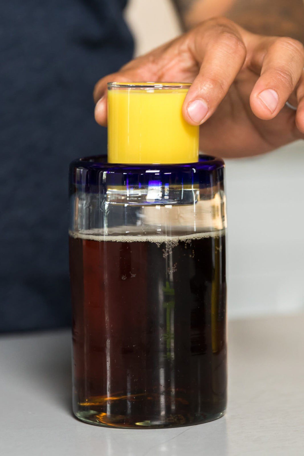 Verter toda la cerveza en un vaso grande suavemente para evitar espuma y ¡soltar el