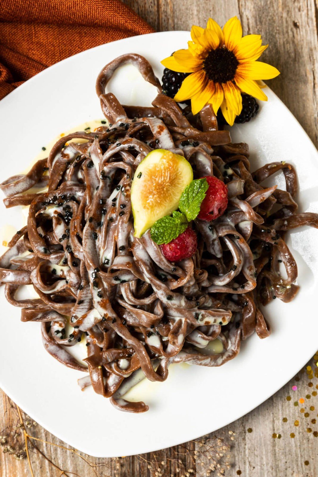 Pasta de Chocolate con Salsa de Rompope